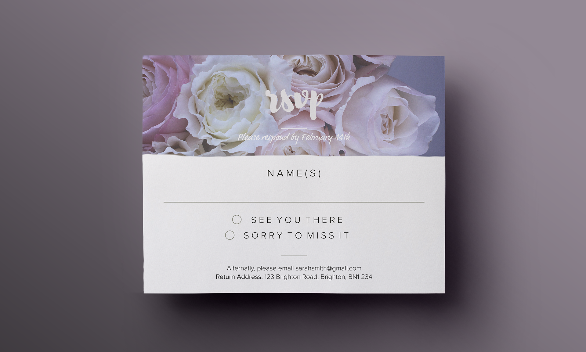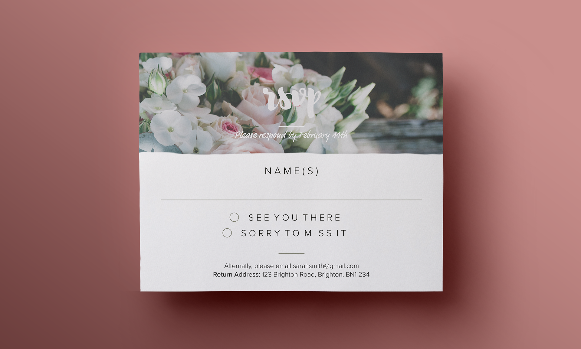 Simple Floral RSVP Design, ideal for Weddings or other events.